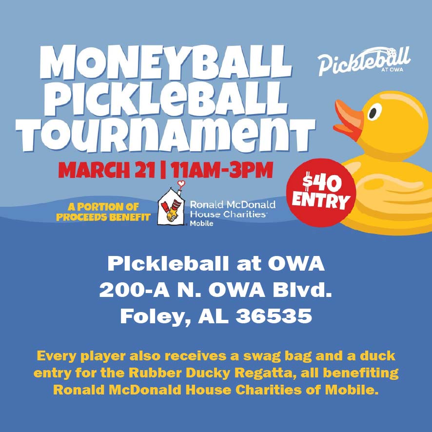 🏆•• "The RMHC Moneyball Doubles Pickleball Tournament" Pickleball Tournament in Foley, Alabama March 21, 2026 https://alabamapickleballtournaments.com/event/the-rmhc-moneyball-doubles-pickleball-tournament/